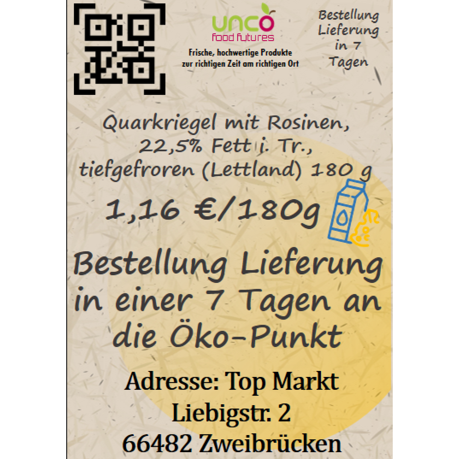 Quarkriegel mit Rosinen, 22,5% Fett i. Tr., tiefgefroren (Lettland) 180 g